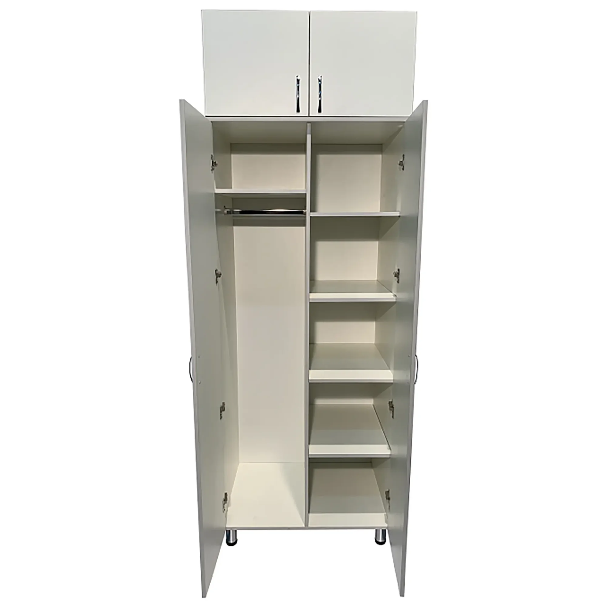 • Оснащен полкой для головных уборов, штангой для одежды, дверцами и регулируемыми по высоте ножками.