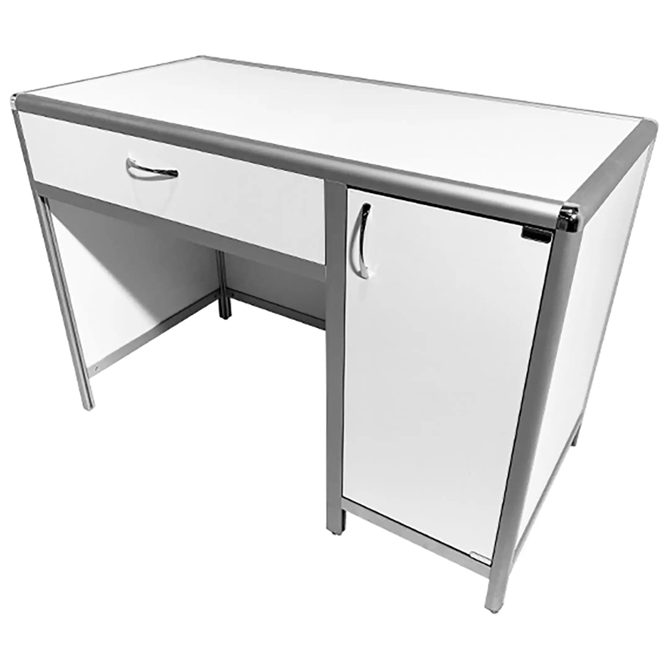 Стол лабораторный MED 10.005al (белый) — это идеальное решение для создания эффективного рабочего места сотрудников в лабораториях и медицинских учреждениях. Модель оснащена выдвижным ящиком под столешницей и боковой тумбой с распашной дверцей и полкой. Каркас выполнен из алюминиевого профиля, столешница из ЛДСП толщиной 16 мм.
