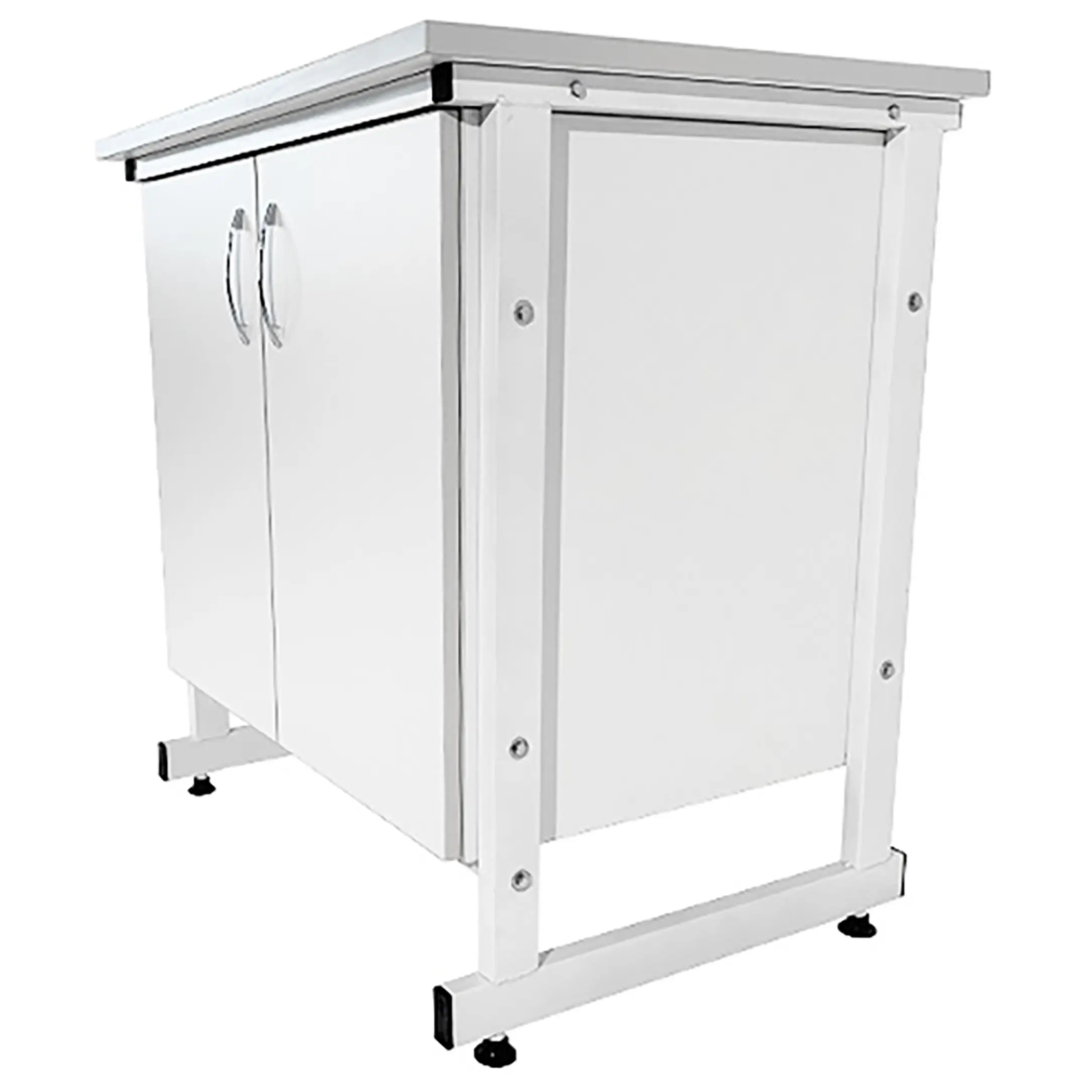 Стол-тумба лабораторная ТЛ 18.001 (белый) — это функциональное решение для хранения различных предметов, инвентаря и приборов в лабораторных условиях или медицинских учреждениях. Модель оснащена тумбой с двумя створками и двумя внутренними полками (328х480х16 мм). Каркас выполнен из стального профиля, столешница из ЛДСП толщиной 22 мм.