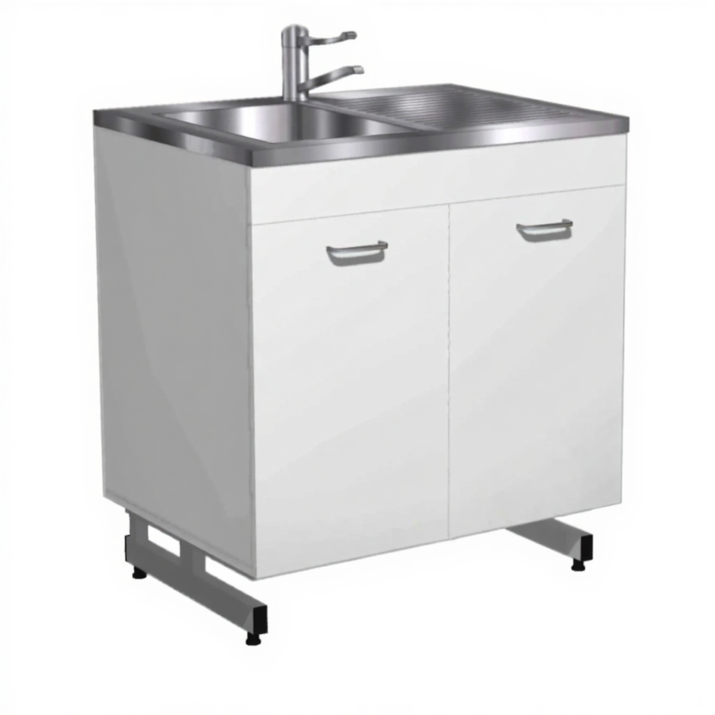 Стол-мойка СТм-203 «Премиум» 800 (корпус ЛДСП серый, каркас серый) — это необходимая составляющая для оснащения рабочей зоны, обеспечивающая удобство и безопасность труда специалистов-исследователей в кабинетах лабораторий. Модель предназначена для мытья и сушки лабораторной посуды. Оснащена одночашевой накладной мойкой с сушкой из нержавеющей стали, локтевым смесителем и двумя дверками в тумбе. Каркас выполнен из стального профиля, корпус из ЛДСтП 16 мм.