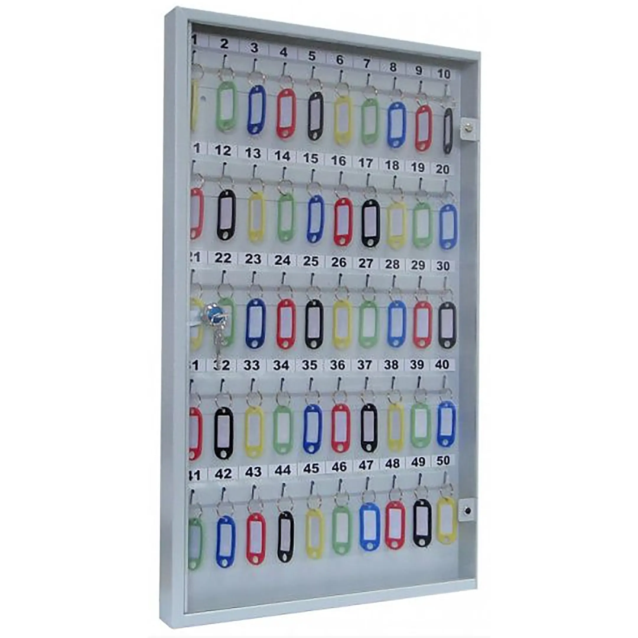 - Надежная защита от пыли и несанкционированного доступа — металлический корпус и запирающаяся дверца защищают ключи от пыли, влаги и кражи. Конструкция обеспечивает физическую сохранность, при этом сохраняя удобство постоянного визуального наблюдения.