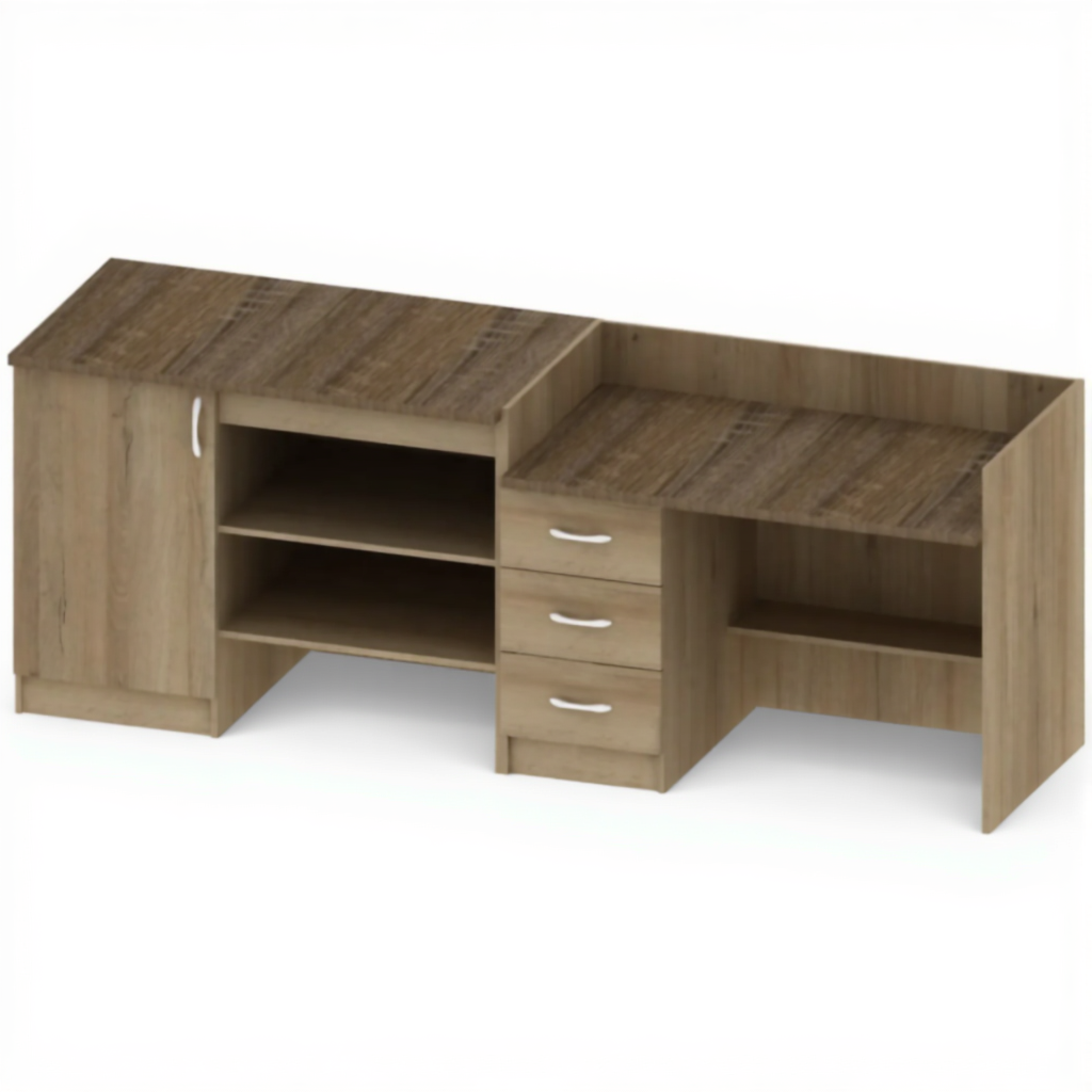 - Раздельная конструкция — состоит из двух отдельных частей: стола преподавателя и демонстрационного стола, что обеспечивает гибкость в организации рабочего пространства.