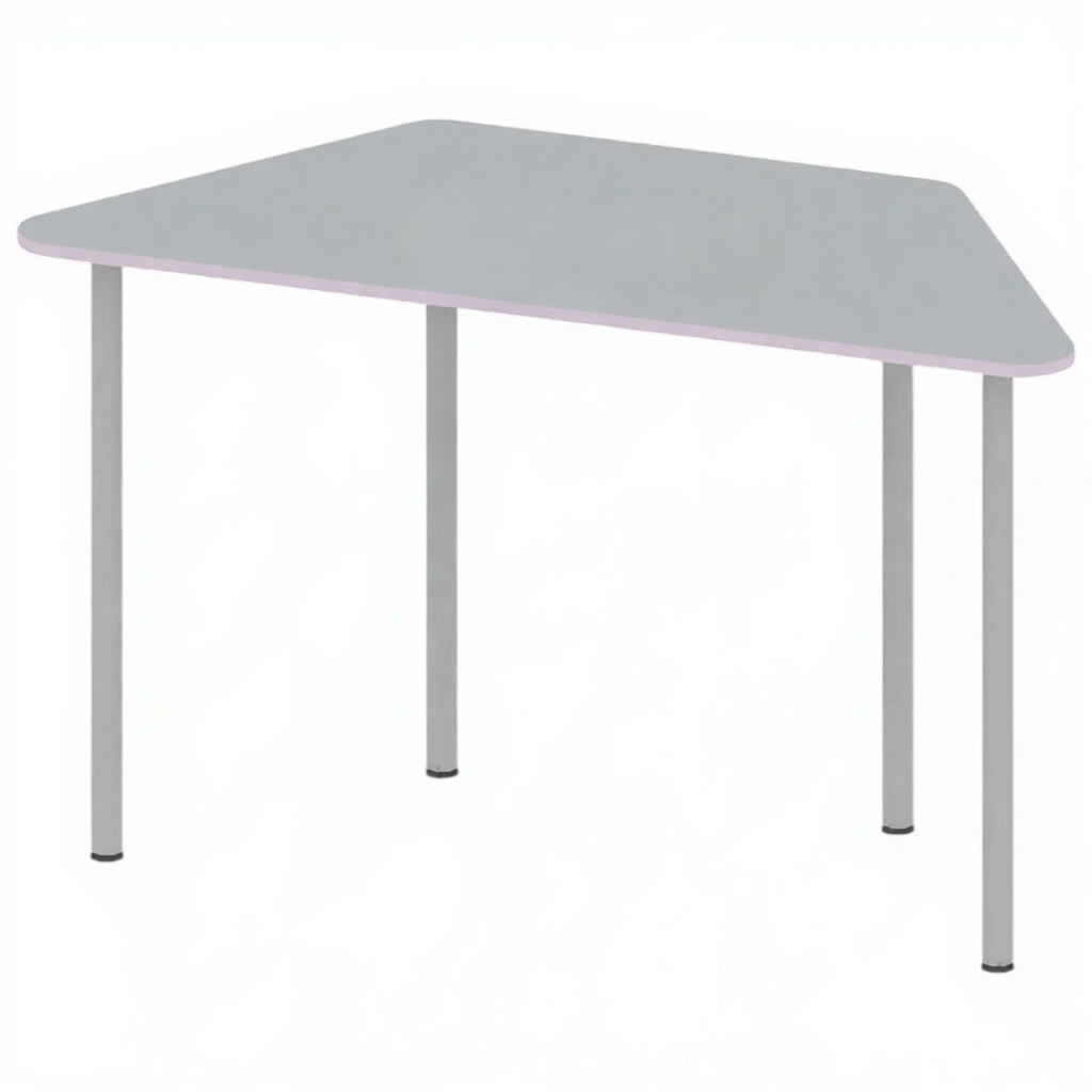 Стол «Трапеция» 1270 мм СТ-ШП-123 — это современное и стильное решение для организации многофункциональных учебных пространств и рабочих зон. Нестандартная форма столешницы позволяет создавать различные комбинации для групповой работы и индивидуальных занятий. Эстетичное сочетание серого цвета с лавандовой кромкой добавляет интерьеру свежести и визуальной привлекательности, создавая комфортную атмосферу для обучения и творчества.