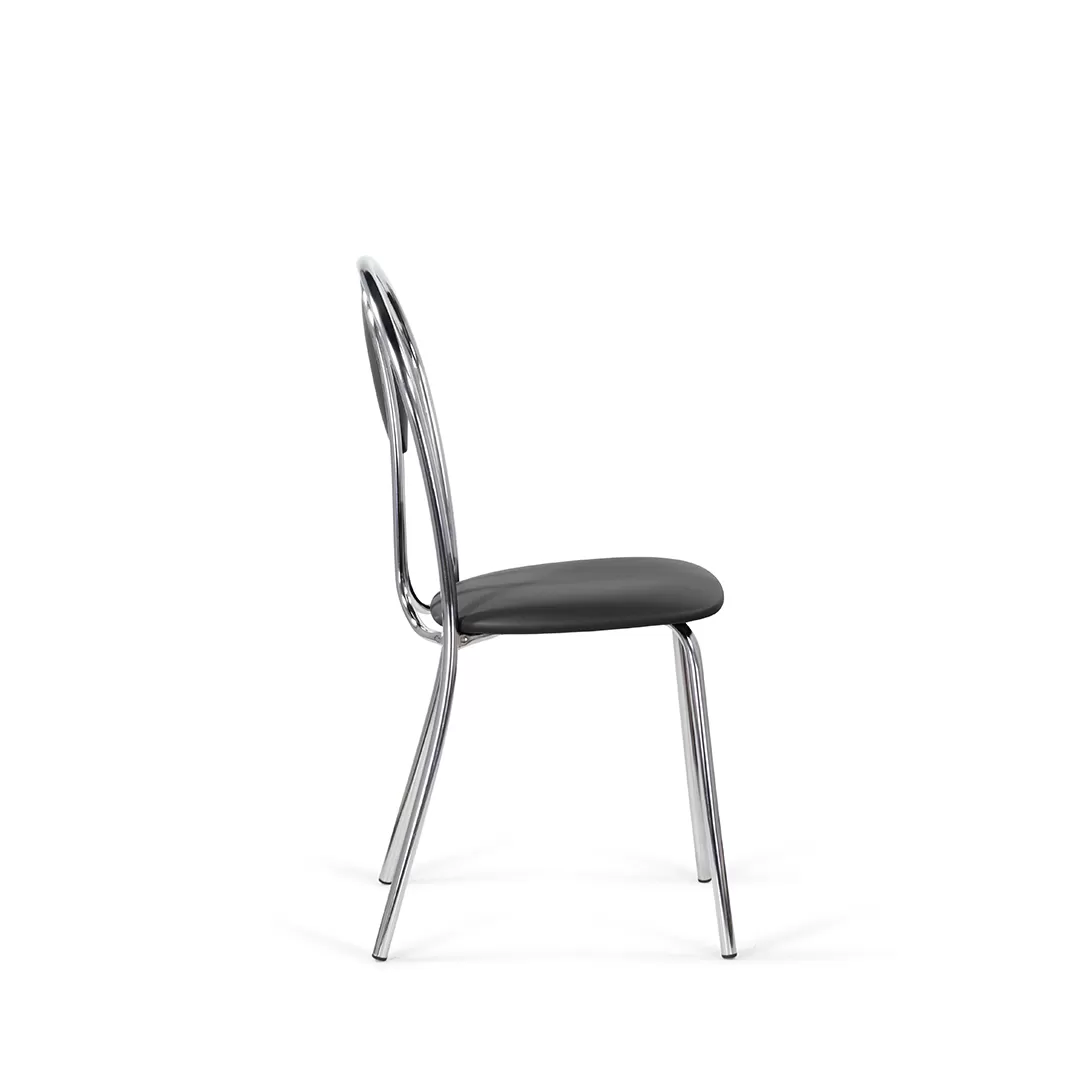 Мягкая вставка на спинке дополняет изящный дизайн стула, что позволяет ему сочетаться с разными интерьерами. Подходит как для домашнего использования, так и для мест общественного питания. Каркас стула выполнен из хромированного металла.