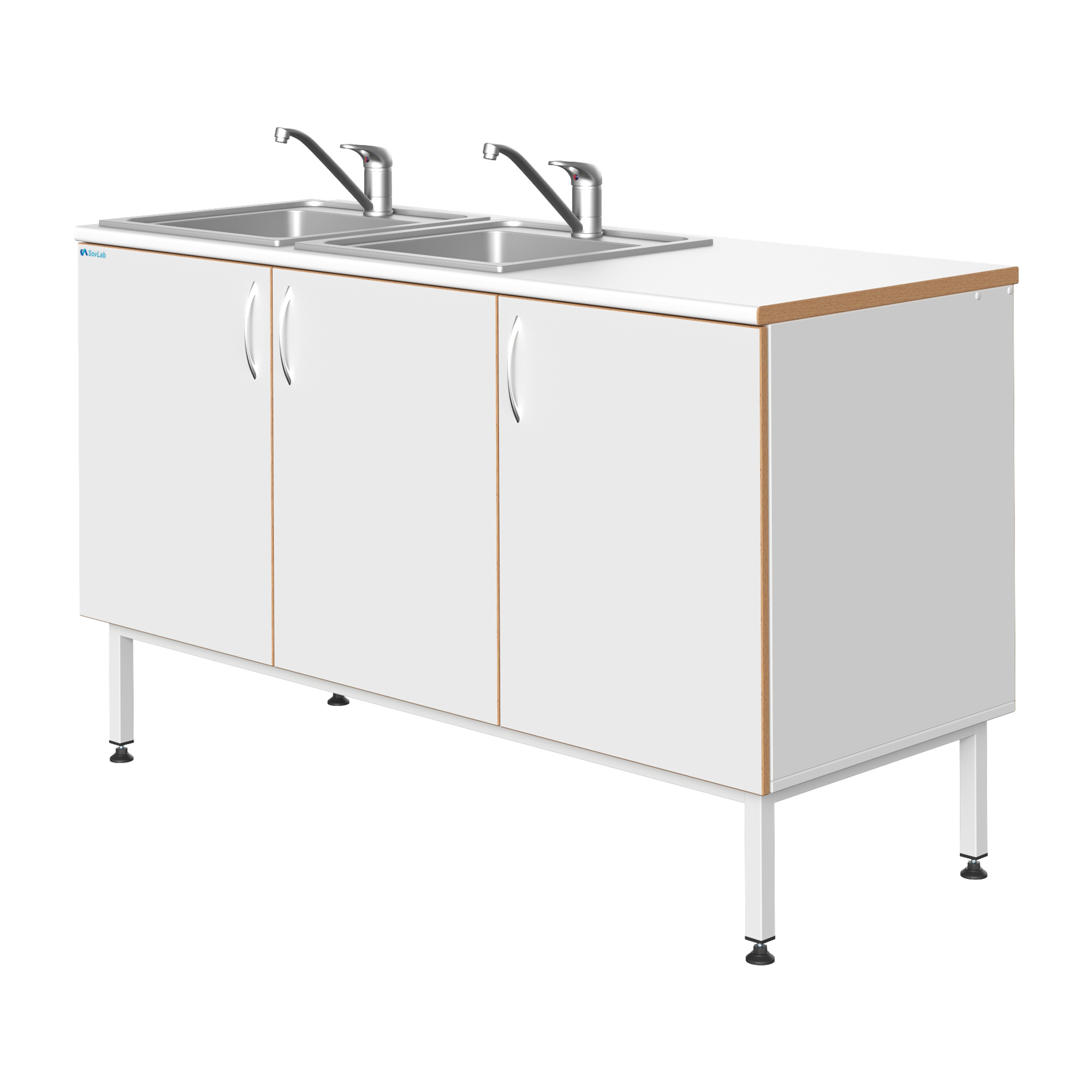 Мойка СОВЛАБ 1500 НЖ-2, двойная — это специализированное лабораторное оборудование, предназначенное для качественной и безопасной мойки лабораторной посуды, приборов и инструментов. Модель оснащена двумя врезными чашами из нержавеющей стали, смесителем и всей необходимой арматурой для подключения к инженерным сетям. Тумба из влагостойкого ДСП установлена на прочный металлический каркас с регулируемыми опорами.