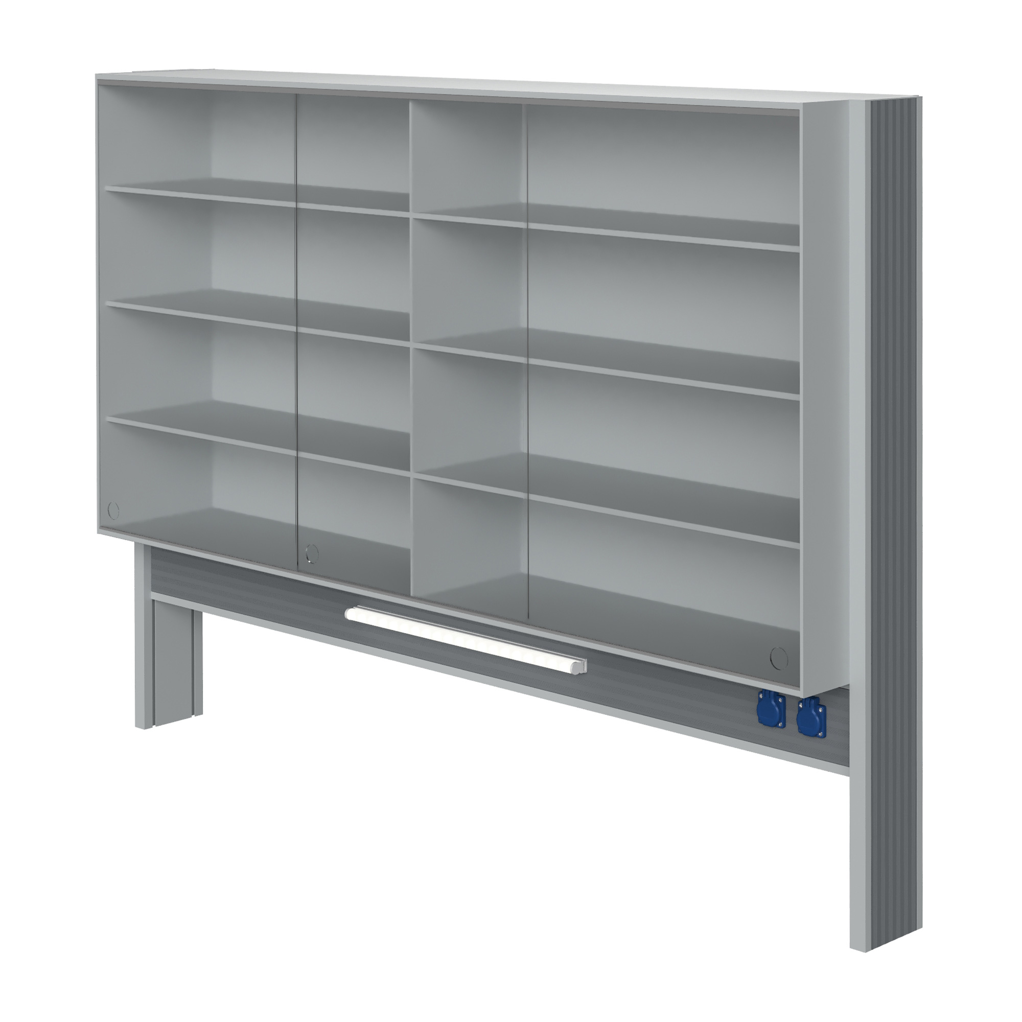 Технологический стеллаж со шкафом 900 мм для пристенного стола Mod. 1800 ТСПШ-90 — это специализированное лабораторное оборудование, устанавливаемое на пристенные столы и предназначенное для хранения лабораторной посуды, приборов, реактивов и принадлежностей. Модель оснащена вместительным шкафом с тремя раздвижными стеклянными дверями, тремя полками, блоком электророзеток повышенной защиты и светодиодным светильником для местного освещения рабочей зоны.