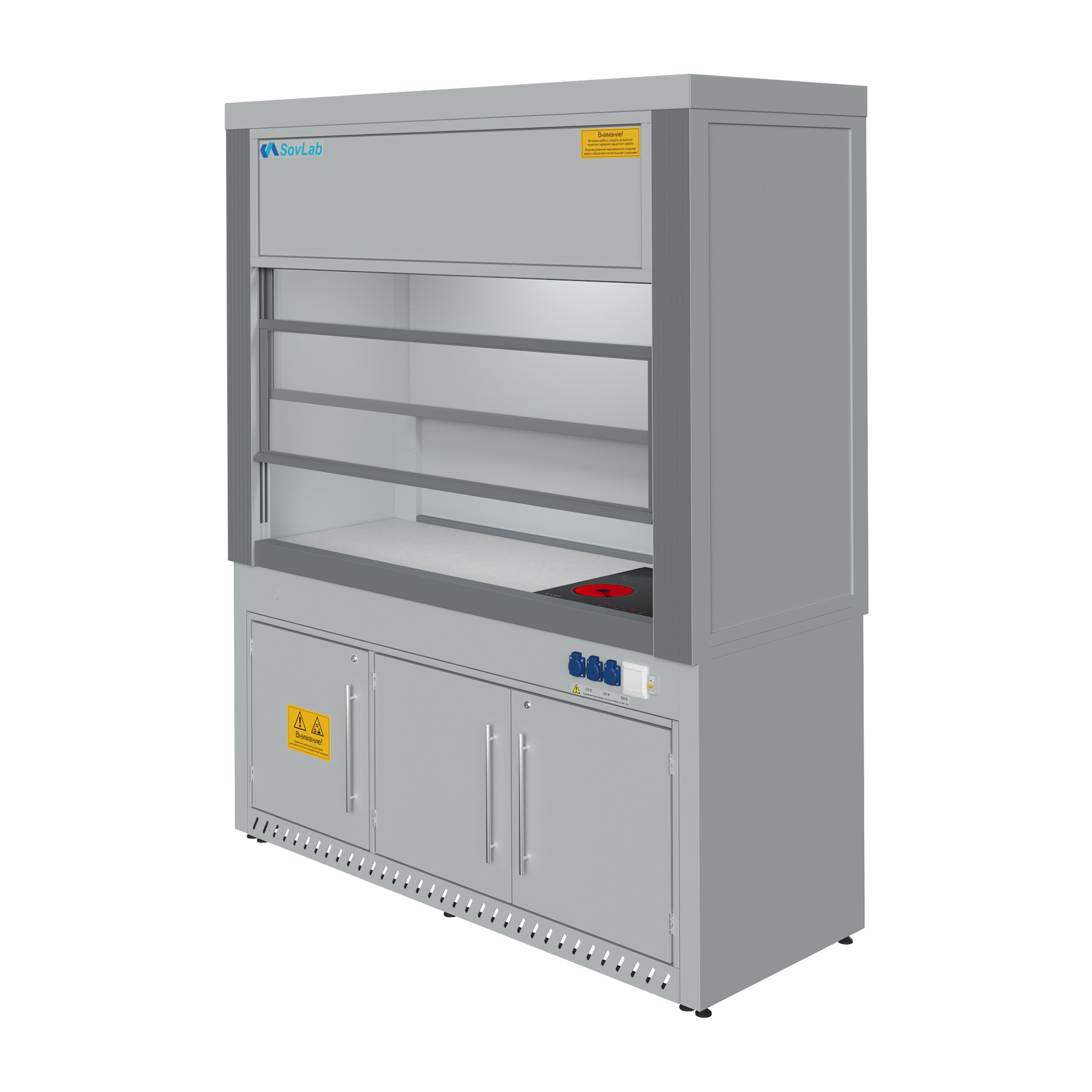 Шкаф вытяжной с нагревательной поверхностью Моd. 1800 ШВНП — это специализированное лабораторное оборудование, предназначенное для безопасной работы с кислотами и агрессивными реактивами, требующими нагрева или термической обработки. Модель оснащена встроенной стеклокерамической нагревательной поверхностью, установленной заподлицо в рабочую столешницу из химически стойкой керамогранитной плитки. Конструкция обеспечивает надежную защиту персонала при работе с летучими, токсичными и химически активными соединениями в условиях высоких температур.