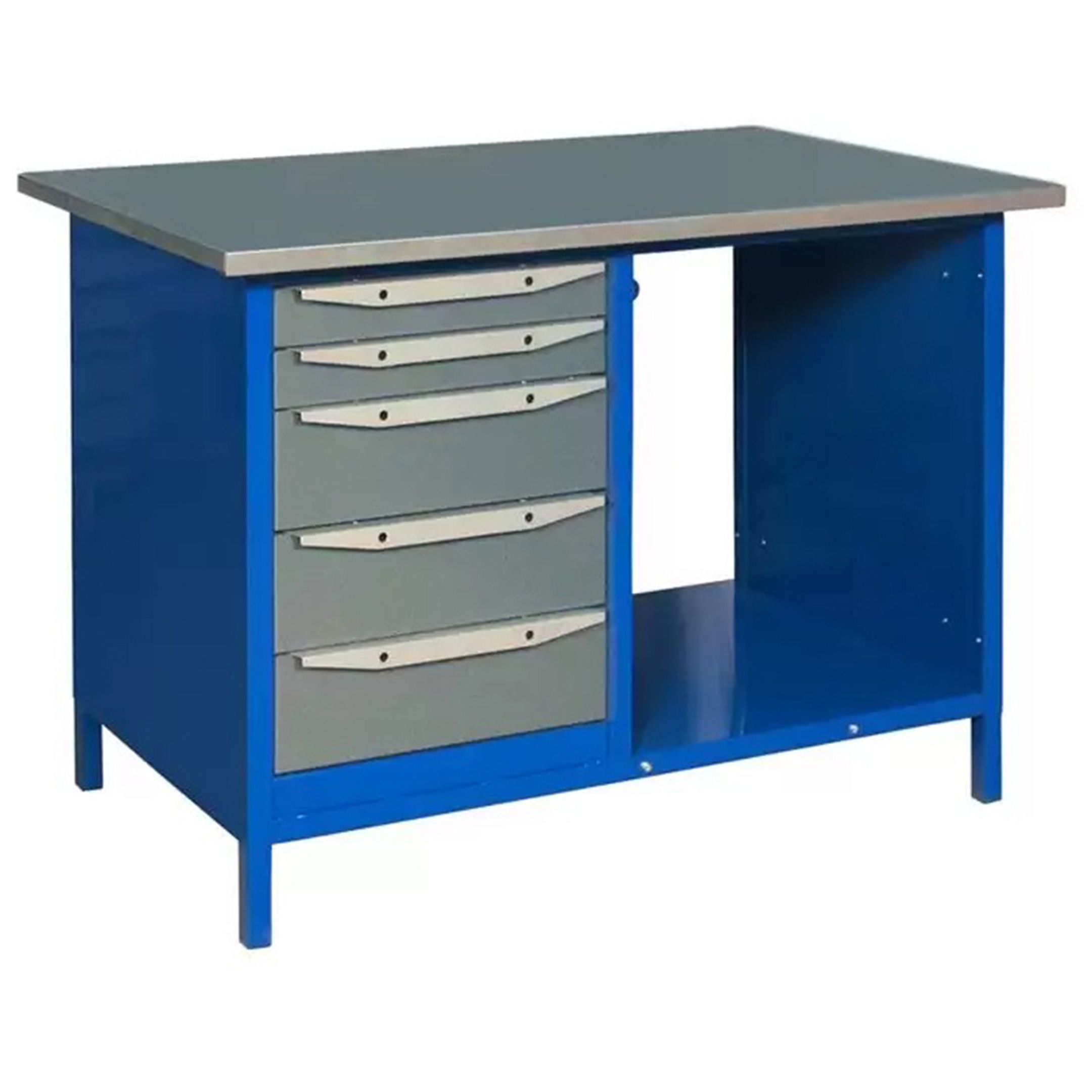 Верстак WK1200(Т5) — это надежное и функциональное решение для организации рабочего места на производствах, в мастерских и гаражах. Модель поставляется полностью в разобранном виде, включая тумбы, что обусловлено особенностью конструкции каркаса из стальной профильной трубы 30х30 мм.
