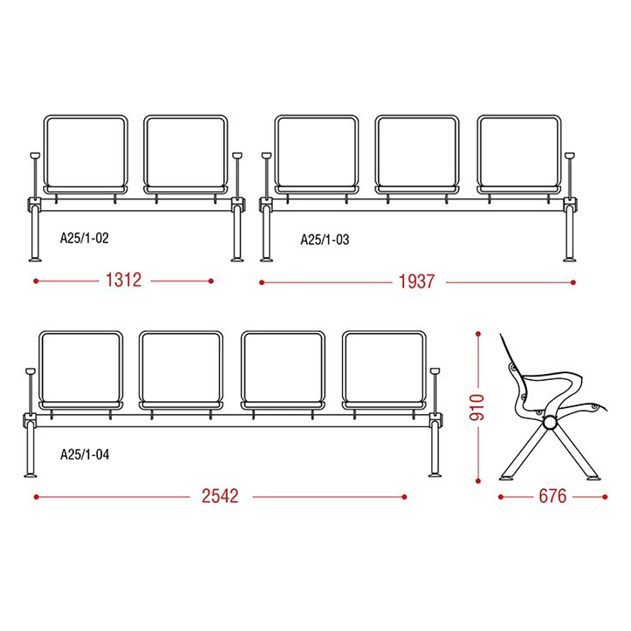 Оптимальный вариант для вокзалов, аэропортов, стадионов, холлов школ, коридоров больниц, поликлиник и общежитий. Там, где большая проходимость людей, и цель – качественно и недорого создать комфортные условия для посетителей. Вариант моделей без мягких накладок позволяет использовать многоместные секции на открытом воздухе в любое время года.