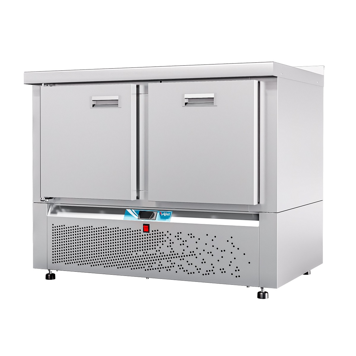 Особенности Электронная панель управления; потребление электроэнергии за сутки, кВт*ч, не более 3,36; климатический класс изделия - 5; поверхность стола - ровная неохлаждаемая поверхность без борта; толщина стенок 60 мм; холодильный агрегат расположен снизу, выдвижной для удобства обслуживания; хладагент - R404a; электронный блок управления с возможностью регулирования и поддерживания необходимой температуры; динамическое охлаждение - воздухоохладитель с вентилятором для равномерного распределение температуры внутри полезного объема; работа при температуре окружающей среды до +42 °C, относительной влажности от 40 до 70%; цельнозаливной пенополиуретаном корпус; автоматическая оттайка; 2 секции - дверь и ящик 1; одна регулируемая по высоте полка-решетка размером GN 1/1; уплотнитель с магнитной вставкой на двери для обеспечения полной теплоизоляци; передняя и задняя стенки легкосъемные; регулируемые по высоте ножки, которые могут опционально быть заменены на колеса (2 со стопором, 2 без стопора) без изменения высоты стола. Описание Стол холодильный низкотемпературный с нижним расположением агрегата предназначен для кратковременного хранения пищевых продуктов на предприятиях общественного питания и торговли. Рациональное использование рабочего пространства кухни за счет совмещения в одном изделии функции холодильного шкафа и рабочего стола.