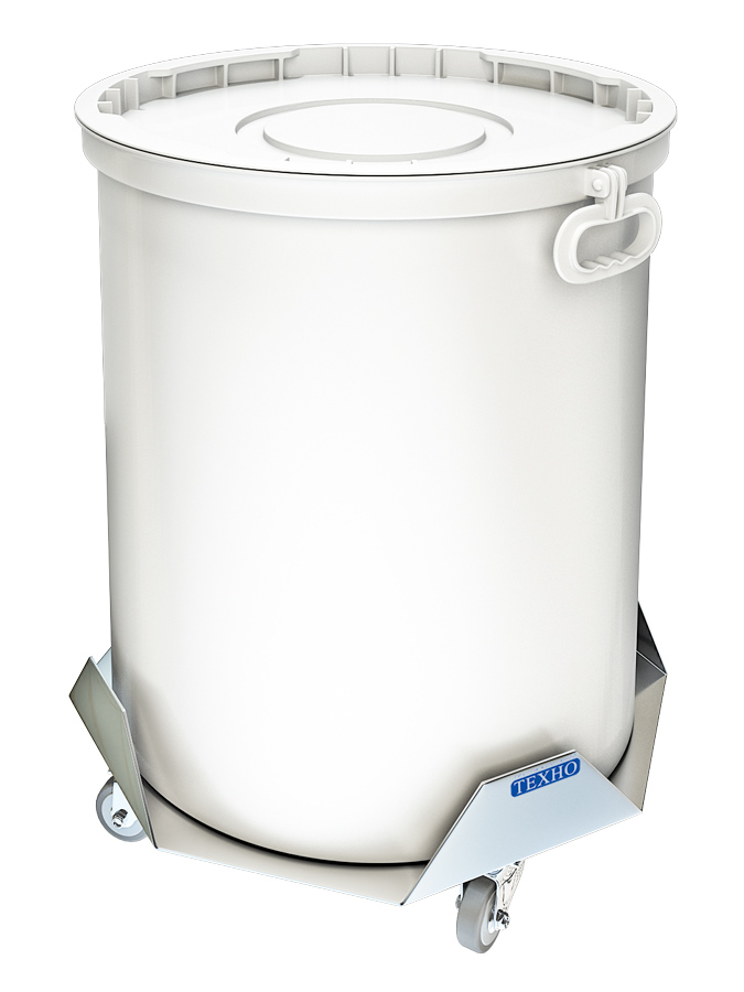 Пластиковая емкость установлена на мобильную платформу из нержавеющей стали. Тележка снабжена поворотными колесами для быстрого и удобного перемещения. Используемые материалы отвечают санитарно-гигиеническим требованиям, легко очищаются от загрязнений.