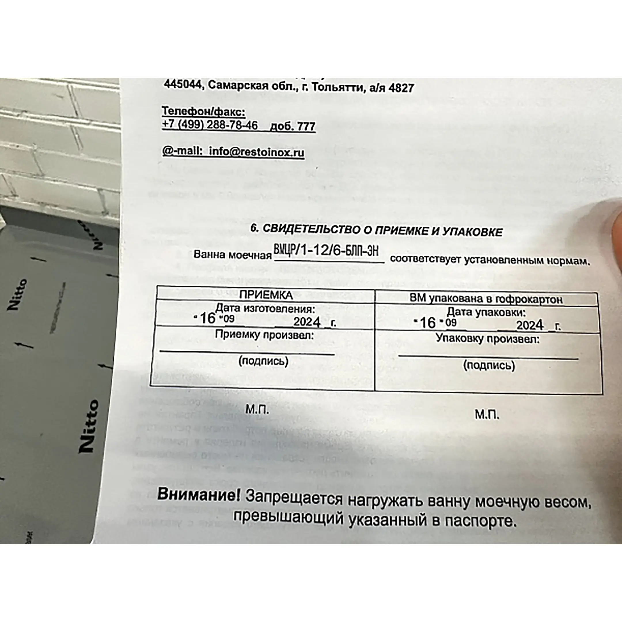 • ВхШхГ упаковки, мм: 1330х400х630;