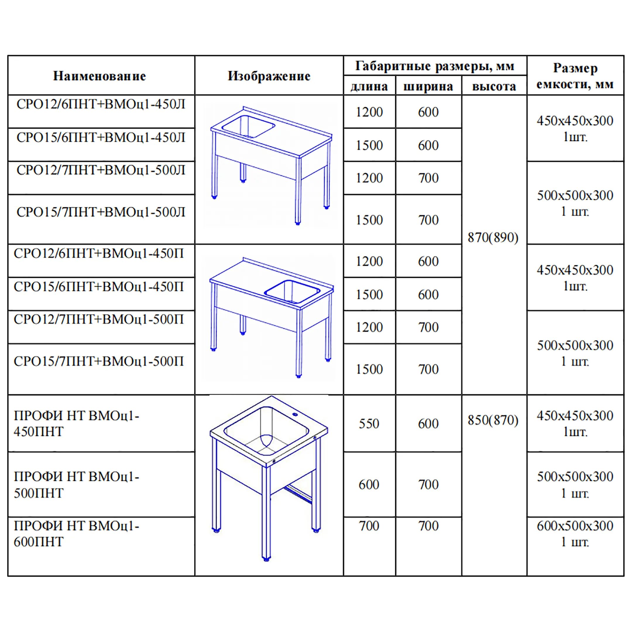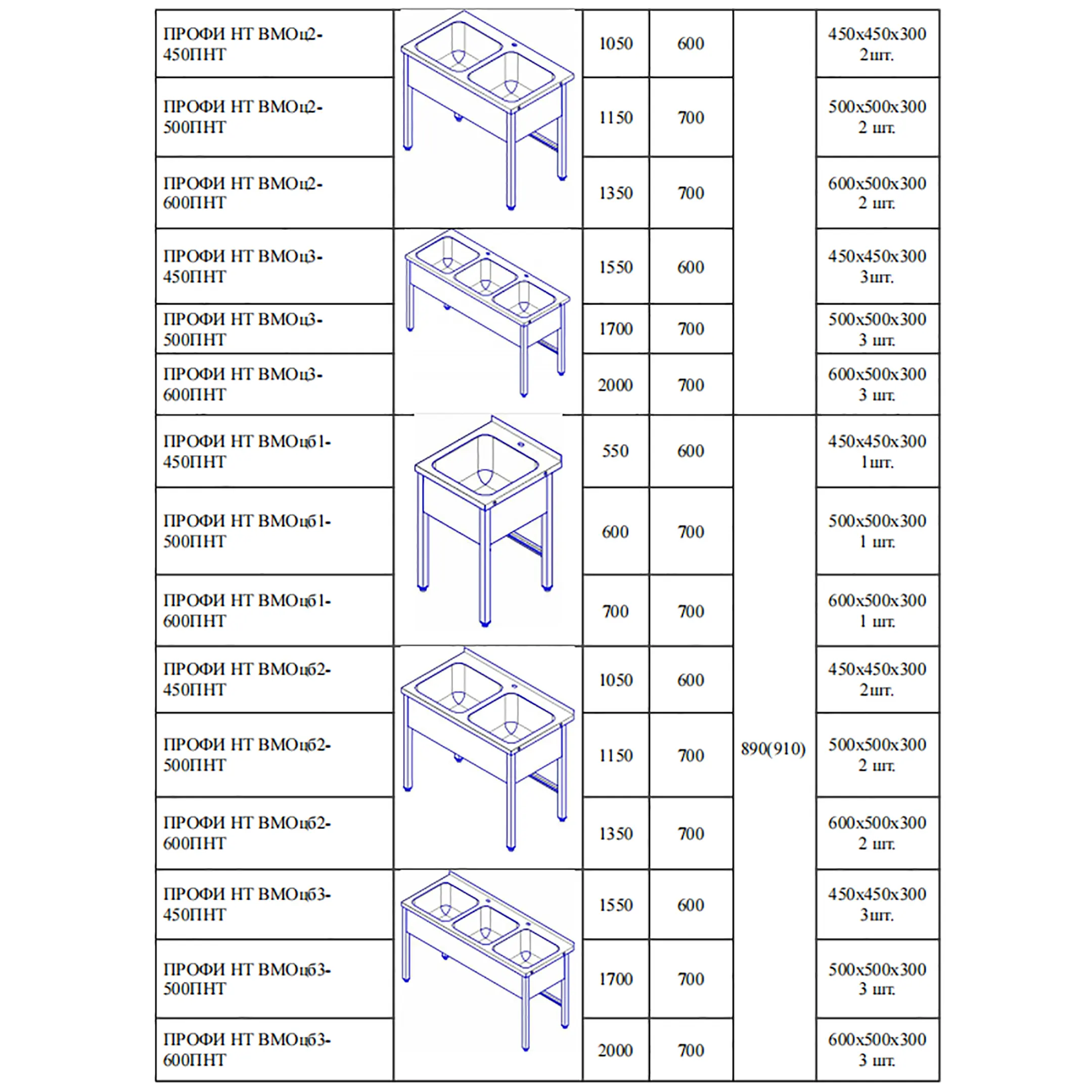 Ванна моечная цельнотянутая ПРОФИ ВМОц3-600ПНТ