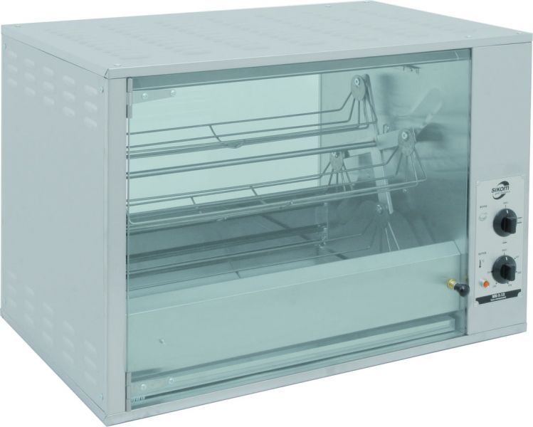 Гриль для приготовления кур МК-3.12 СИКОМ — это профессиональное оборудование для предприятий общественного питания, предназначенное для приготовления куры-гриль, мяса, рыбы и других продуктов. Модель представляет собой электрический карусельный гриль с одной камерой и электромеханическим управлением.