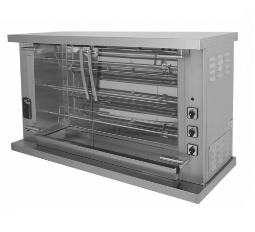 - 3 шампура на 15 тушек — позволяет одновременно готовить до 15 порций, обеспечивая высокую производительность.