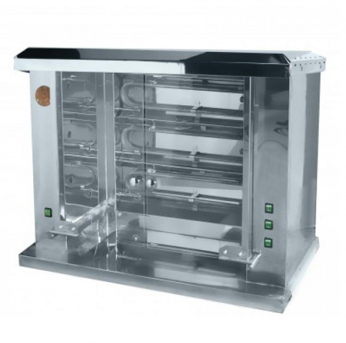 Гриль электрический Ф3Ш2Э — это профессиональное оборудование для предприятий общественного питания и торговли, предназначенное для приготовления целых тушек цыплят, куриных окорочков, крылышек и других продуктов. Модель оснащена пятью шампурами в два ряда и рассчитана на 25 тушек.