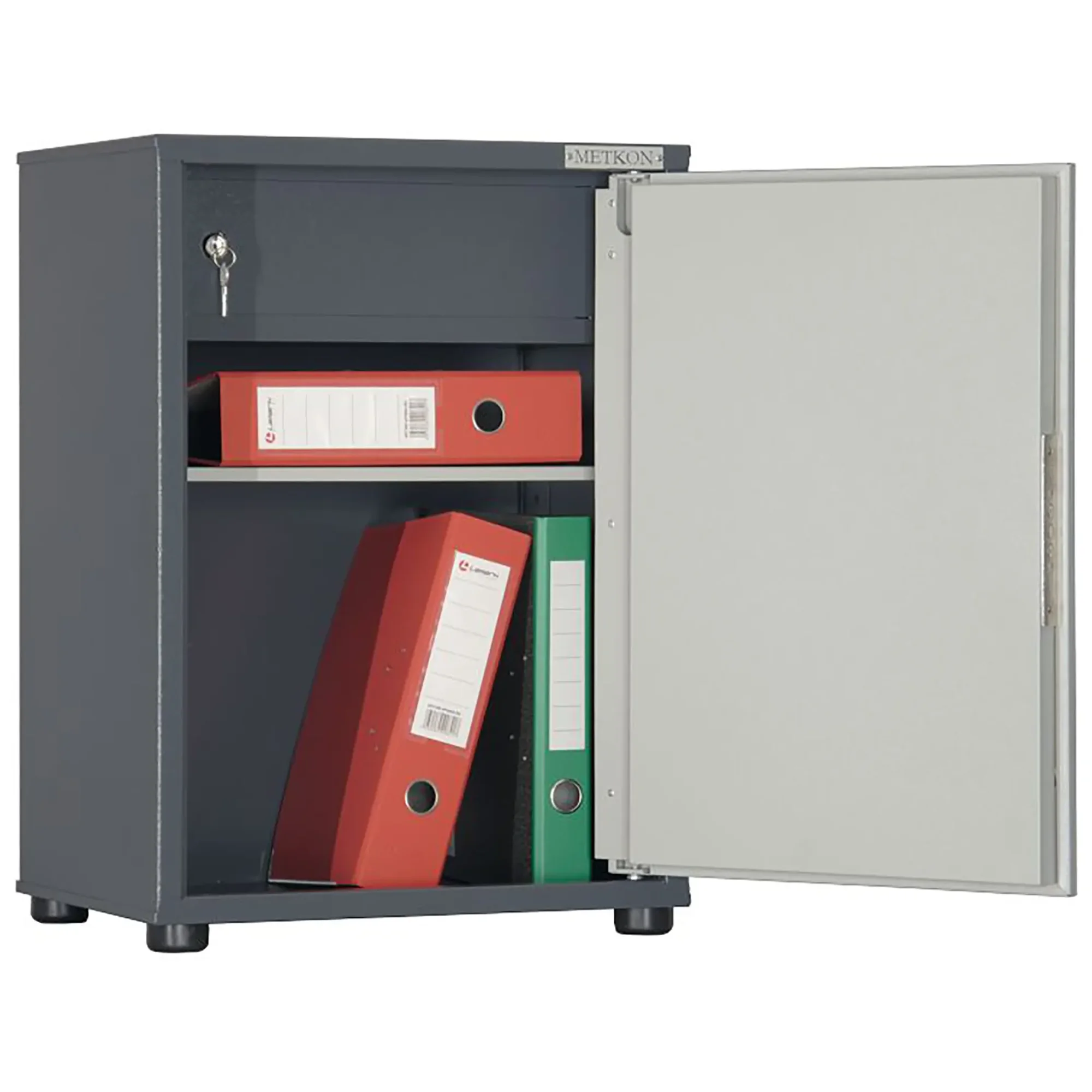 - Надежная защита содержимого — две распашные дверцы оснащены встроенными замками с индивидуальными ключами, обеспечивая сохранность конфиденциальных документов и ценного имущества от несанкционированного доступа.