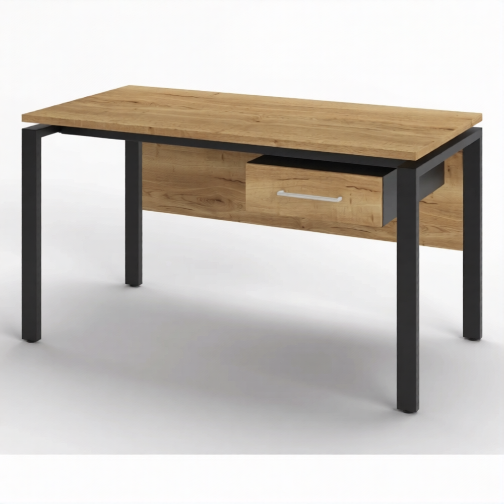 Стол рабочий 1 ящик СрТ-21 (тип 1) (1600х600х750) (столешница ЛДСП дуб вотан, каркас черный)