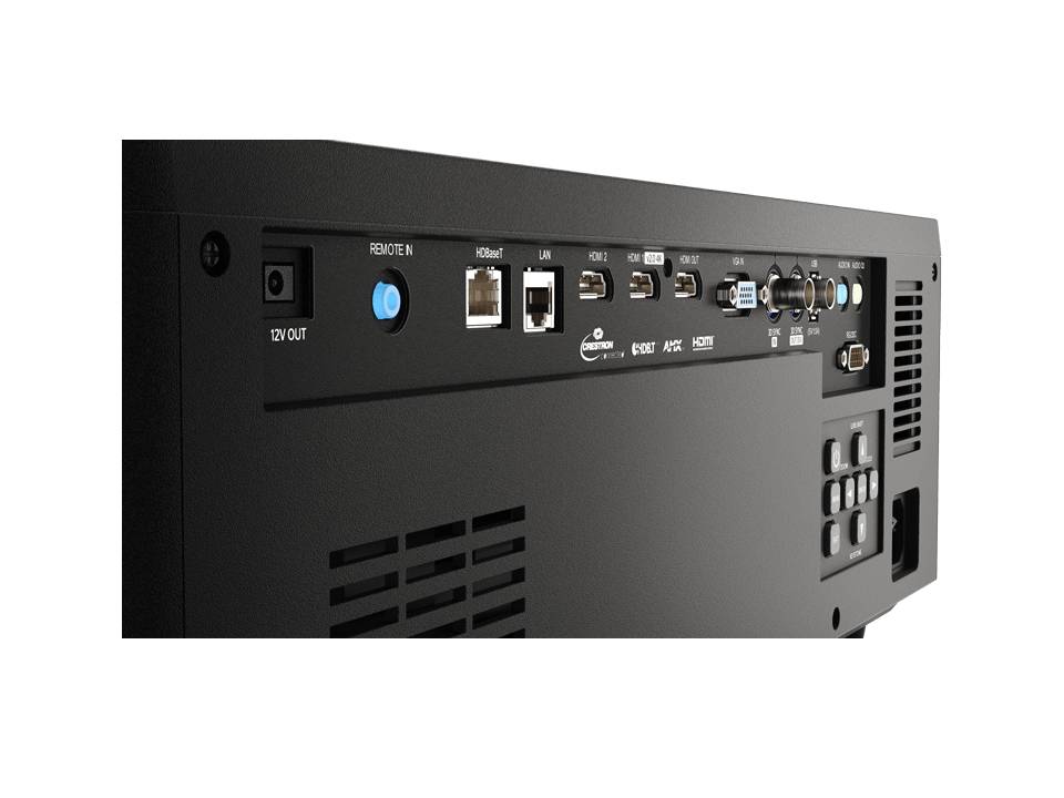 Инсталляционный, лазерно-фосфорный, встроенный моторизованным объектив 1,25-2,0:1. Технология 1 DLP, Яркость 7 200 ANSI, Разрешение WUXGA (1920х1200), Контрастность 3 000 000:1 , Вес 13,7 кг, VGA (D-sub 15-pin) In; HDMI in; HDMI out; HDBaseT; LAN (RJ45); Audio-Out (Mini-Jack); Audio-In (Mini-Jack); USB Type A; 3D sync In (BNC); 3D sync Out (BNC); RS232C; Wired Remote in (Mini Jack)
