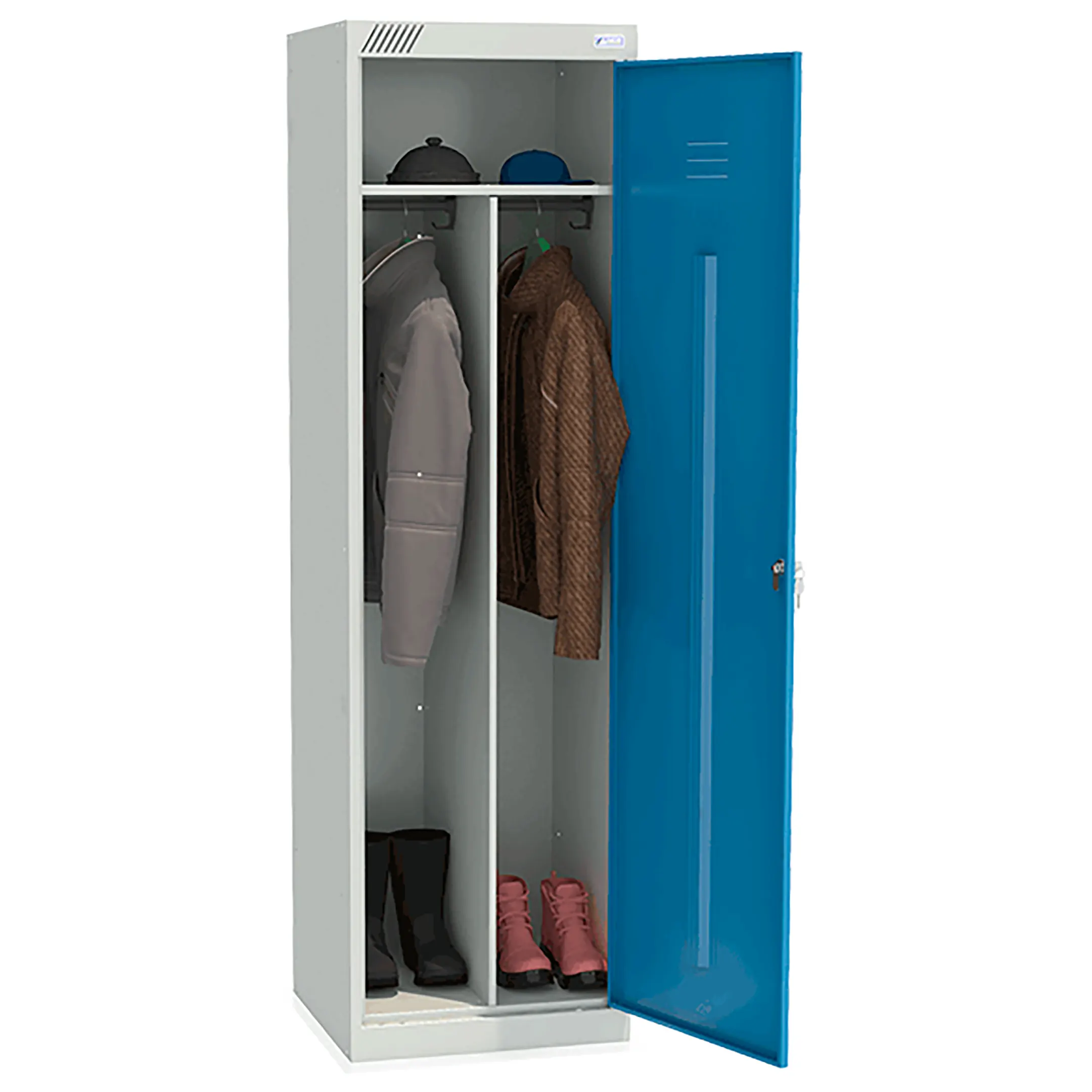 Металлический шкаф для одежды ШРЭК-21-530 предназначен для хранения сменной одежды в офисных, производственных и спортивных помещениях.