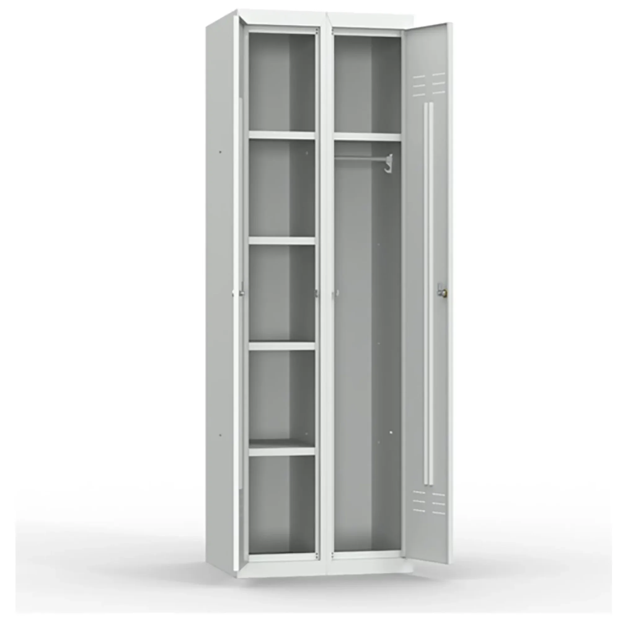 - Оптимальные габариты для школьных помещений — модель имеет удобные размеры для размещения в учебных кабинетах, санузлах, гардеробных и других помещениях образовательных учреждений, обеспечивая при этом достаточный объем для хранения необходимого инвентаря.