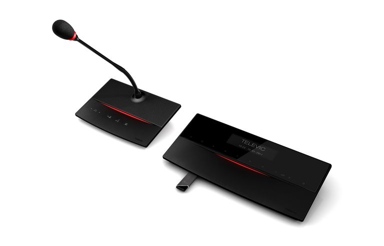 Televic D-Cerno CUR – это центральный блок дискуссионной системы серии D-Cerno, которая подходит для совещаний малых и средних масштабов. Центральный блок позволяет объединить до 50 пультов в единую систему, а также расширить до 150 участников при помощи дополнительного центрального оборудования.