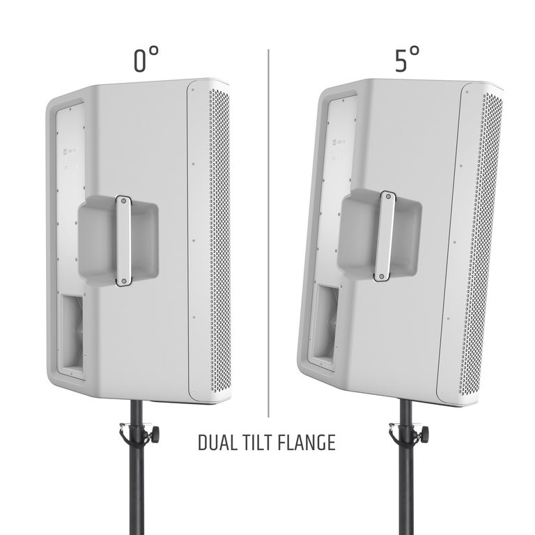 Для использования в качестве сценического монитора в акустической системе предусмотрены ударопрочная решетка гриль и вертикальный угол 55°. При вертикальном расположении в качестве сателлита предусмотрен «стакан» под стойку 36 мм с двойным углом наклона 0° или 5° для оптимального расположения системы.